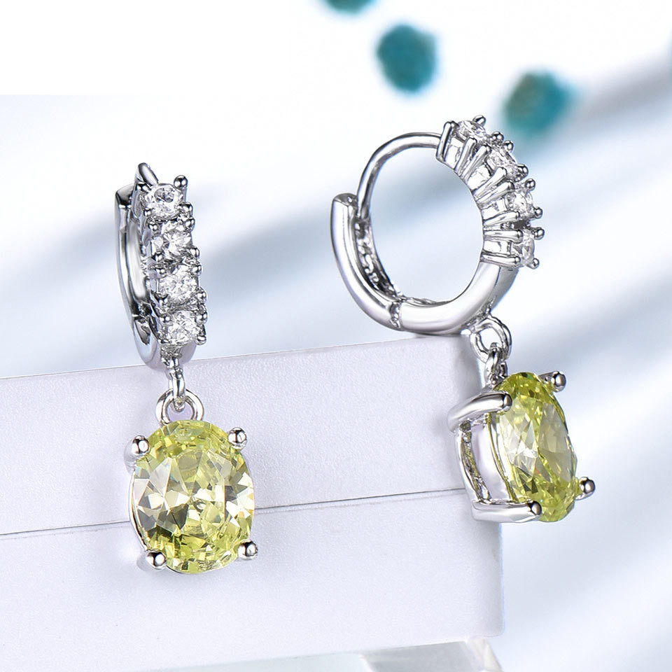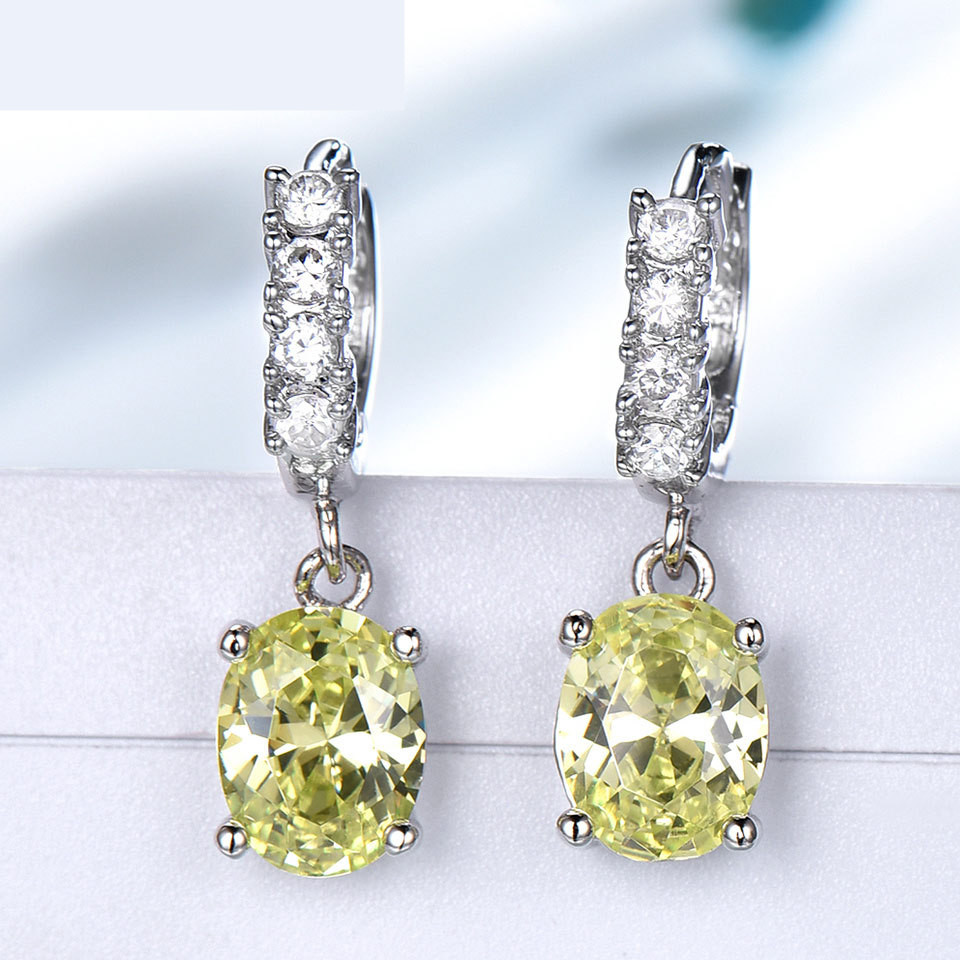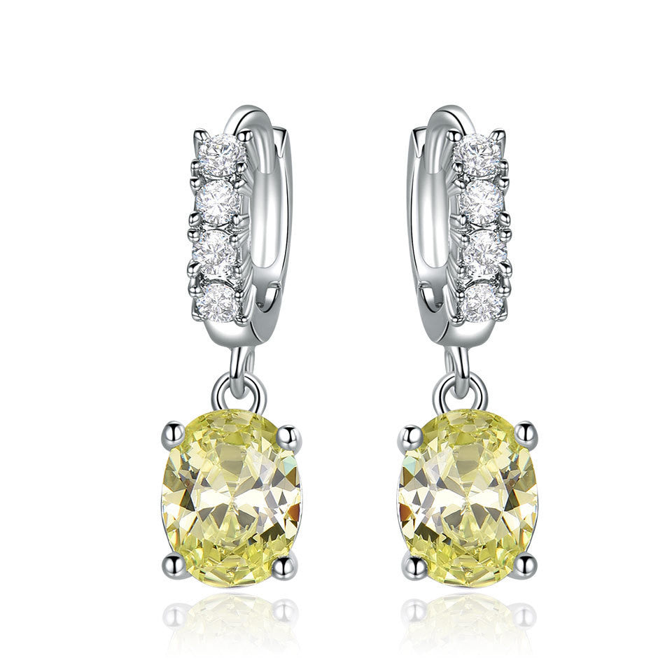 Sterling Silver Cubic Zirconia Citrine Diamond Earrings